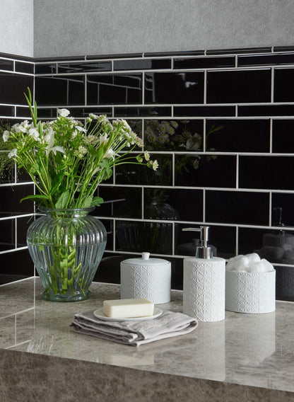 Experience the elegance and sophistication of our black moulding, designed as an exquisite pencil liner that enhances any tile arrangement. Its translucent glaze provides a lustrous sheen, accentuating the textures and contours of tiles and moulding with precision. This piece is a standout in our Artworks collection, renowned for its brilliant hues, sumptuous glazes, and detailed craftsmanship. Perfect for enhancing kitchens, bathrooms, and more, it integrates seamlessly into both traditional and modern spaces.