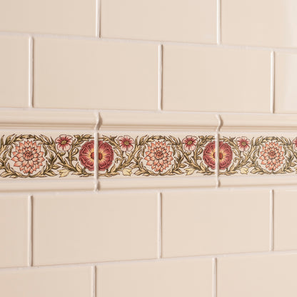 Step back into the Victorian era where floral embellishments were a hallmark of elegance, and bring that timeless charm into your home with these exquisite ceramic tiles. Ideal for enhancing your bathroom, kitchen, or cloakroom, this classical decorative border exemplifies sophistication. Perfect for those who cherish classic designs or are eager to infuse a touch of innovation, these tiles provide a seamless blend of historic allure and modern aesthetics.