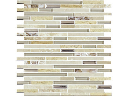 This elegant mosaic, in a subtle beige hue, is crafted from a combination of glass and stone, resulting in a striking mixed finish that enhances any wall it adorns. Its refined dimensions of 300 x 300mm make it an ideal choice for various interior design projects, offering an appealing yet understated touch of luxury.