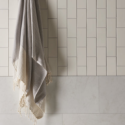 Vintage White tiles offer warm tones that provide a softer, more inviting look compared to Brilliant White. One of the most versatile options is the large brick-shaped tile, which suits a variety of layouts. When laid horizontally, it can make a room feel wider, while a vertical layout creates the illusion of higher walls. For a timeless design, the herringbone pattern is always a classic choice.